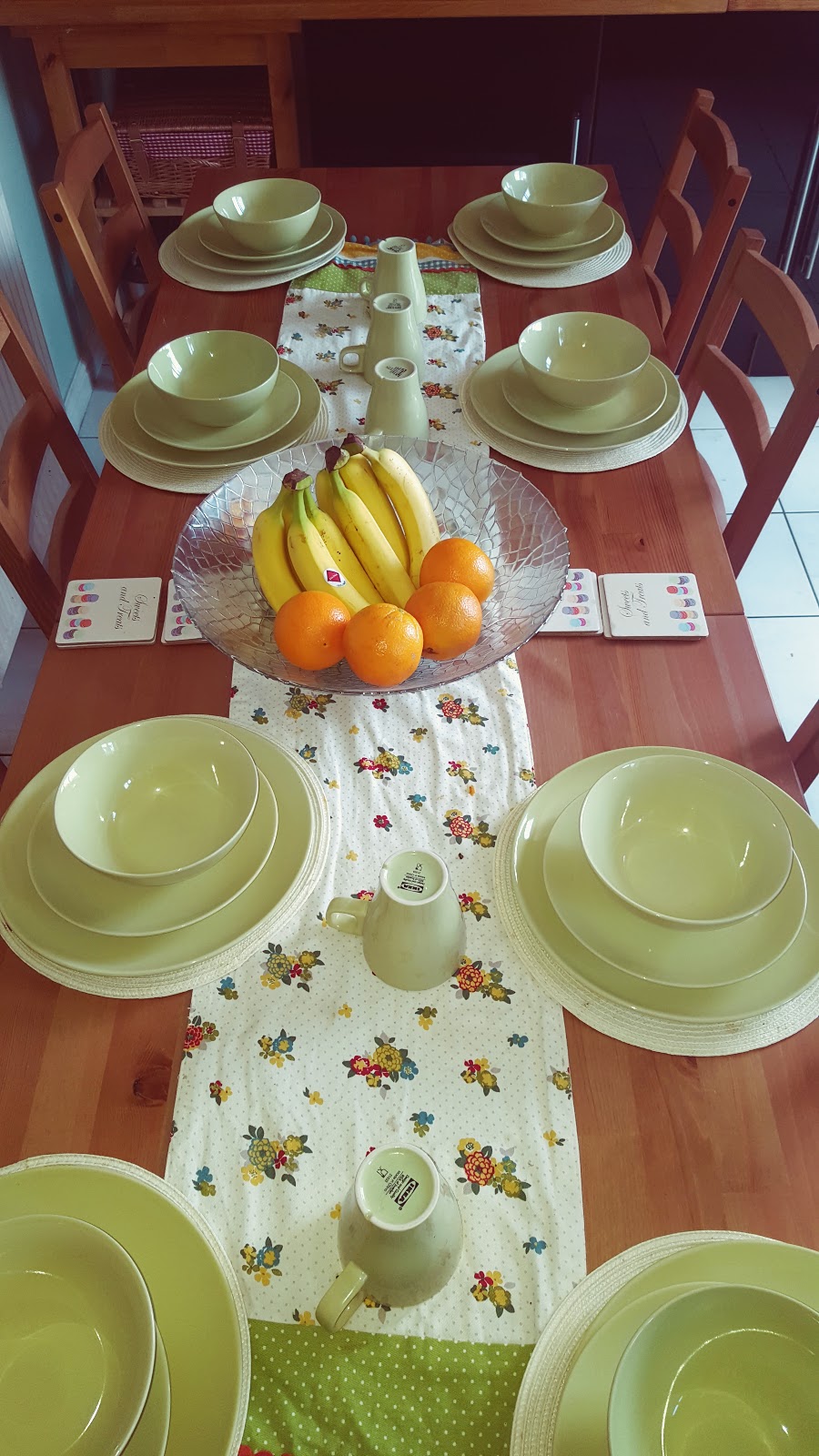 Having 4 children, 6 of us in total, we needed a nice big table. The price for a 6 seated wooden table were above our price range. In the end we went for 2 small wooden tables and push them together.