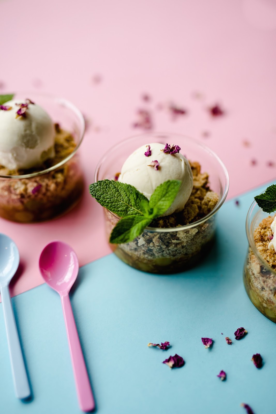 - Last but not least, serve with double cream, rose petals and a sprig of mint.