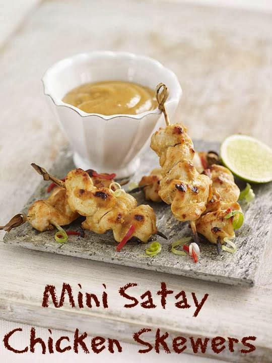 Mini Satay Chicken Skewers: Christmas Party Food Ideas.