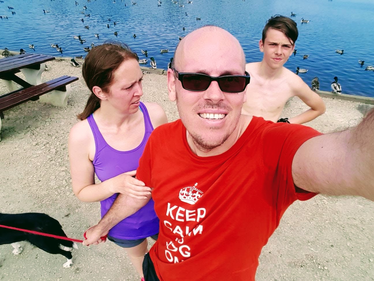 A tired selfie afterwards. Look at the view of being out running in nature 🙂 My husband took Mollie this time as it was warm. He took her for a jog to get it over quickly. With me, she would have been running ages.