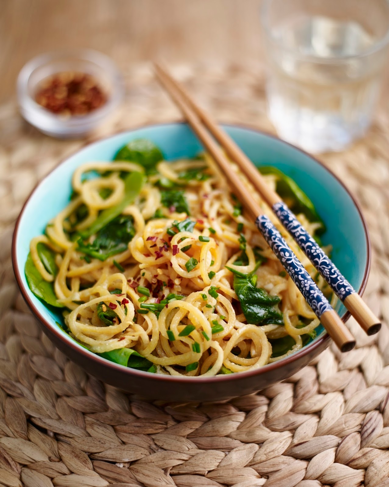 - Cook for 5 minutes then add in the spinach and chives. Stir to wilt the vegetables, check the seasoning and serve sprinkled with a few chilli flakes.