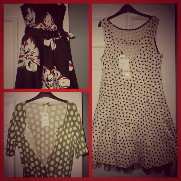 Nipped into my local charity shop looking for a vintage plate stand and came out with 3 little bargain,, the polka dot dress still original price tag on too. No I didn’t get a cake stand….